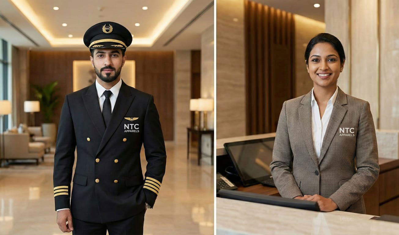 Our hospitality uniforms are crafted to enhance guest experience while offering comfort to staff working long shifts. We manufacture elegant, functional uniforms suitable for hotels, resorts, and restaurants.